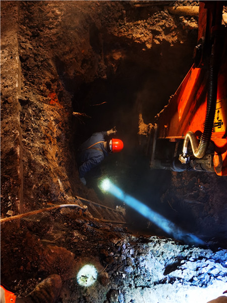 在现场抢修人员发现该路段已经形成大量积冰,严重影响了营区官兵和车辆通行,周边1400多户居民的正常用水也受到了影响。抢修人员通过返水位置初步确定为该处供水管线漏水。公司抢修人员立即联系相关地下管线单位会签和管网抢修分公司探测地下管线。经过会签,公司抢修人员在管网抢修分公司工程机械的配合下对路面进行破拆。由于此处地下存在供暖、煤气、排水管线以及军用光缆线路,稍有不慎就会对其他管线和光缆造成破坏。因此在路面破拆后,公司抢修人员改为人工锹镐挖掘。该处地面进行过加固处理,给作业坑挖掘造成很大困难,同时抢修人员还要克服翻沙流水带来的不便。公司抢修人员在零下二十四、五度的低温中连续挖掘数小时,终于成功找到漏水点位置,并成功封堵漏水点。