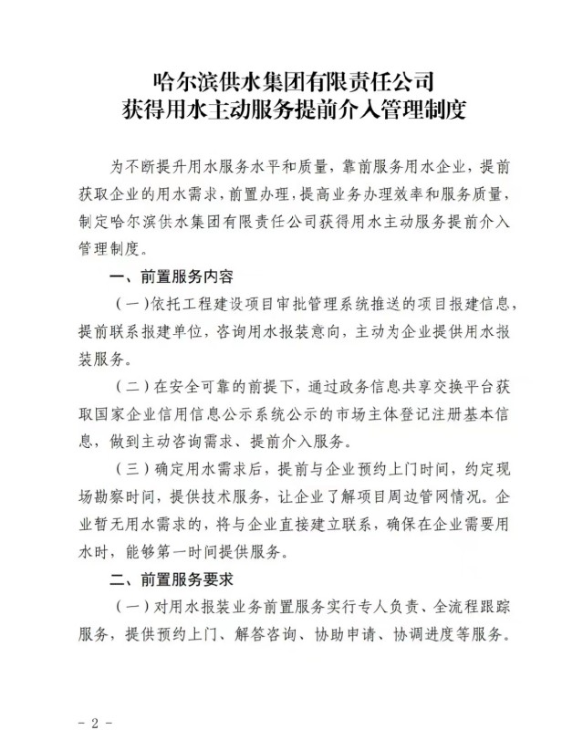 供水集团获得用水主动服务提前介入管理制度的通知