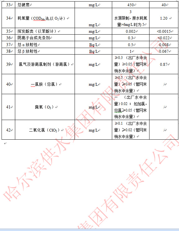 出厂水常规42项目指标 (2019年 6月)