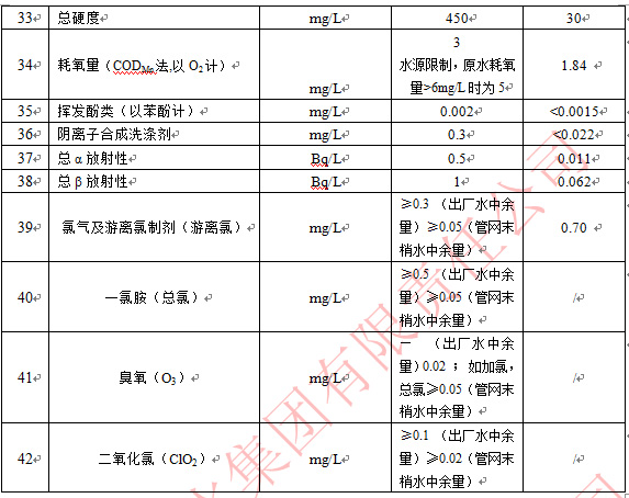 2019年12月出厂水常规42项指标