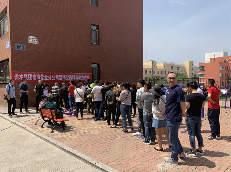 考虑到王岗供水接收工作时间紧、任务重的工作实际,在保证公司其他代号正常抄表收费的前提下,公司领导班子带领营销管理部,放弃休息日,采取各科室轮换的方式在王岗开展现场服务:张贴温馨提示、与用户签订供水合同、现场收费、为百姓答疑解难。由于许多用户不会使用手机支付,在服务现场,公司还指派专人帮助用户学习使用各种手机支付软件,让用户今后缴费更加便捷。在各个服务现场,公司党员服务队充分发挥作用,将解放思想大讨论成果转化为服务用户的热情,用实际行动践行为用户提供高效优质服务的初心。公司将党建带团建工作落到为民服务的实处,青年志愿者服务队利用节假日积极参与王岗供水接收工作,充分发挥了团员青年的后备军力量,为王岗供水接收做出了应有的贡献。