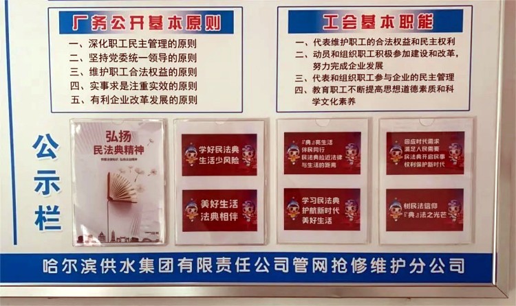 为深入学习贯彻党的二十大“依法治国”精神及习近平法治思想,切实做好民法典宣传学习,供水集团组织开展以“美好生活·民法典相伴”为主题的“民法典宣传月”活动,取得了良好宣传效果和示范效应。